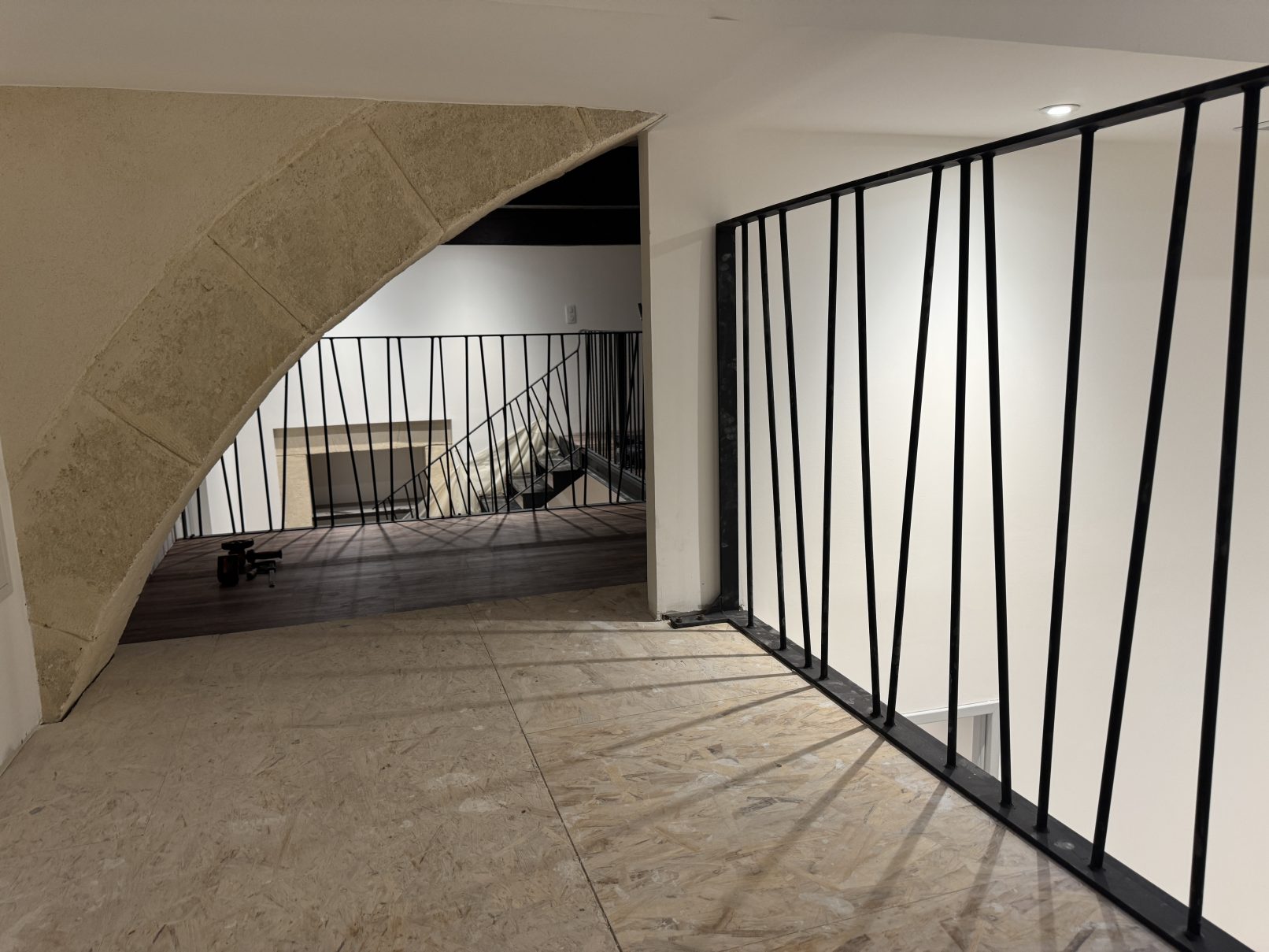 Une grande cuisine, deux salles de bain et une mezzanine dans l’entrée ont permis d’amener une modernité au lieu, tout en gardant son âme historique avec la rénovation des poutres bois en plafond et de certains murs en pierres.