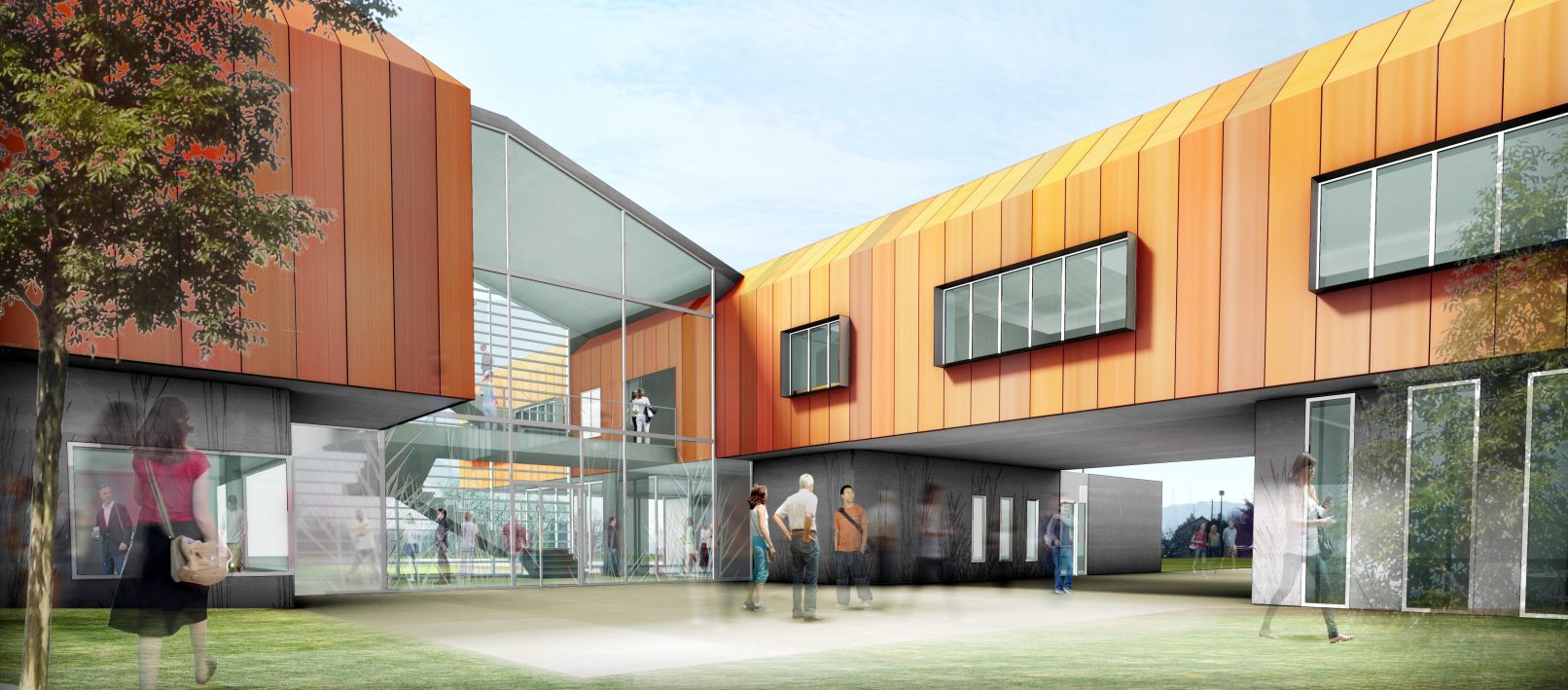 Cet équipement devait tenir compte d’un environnement d’habitats individuels, où le matèriau Terre cuite est très présent. S’appuyant sur ce matériau existant, le bâtiment devient un lien entre l’habitation et le monde du travail.