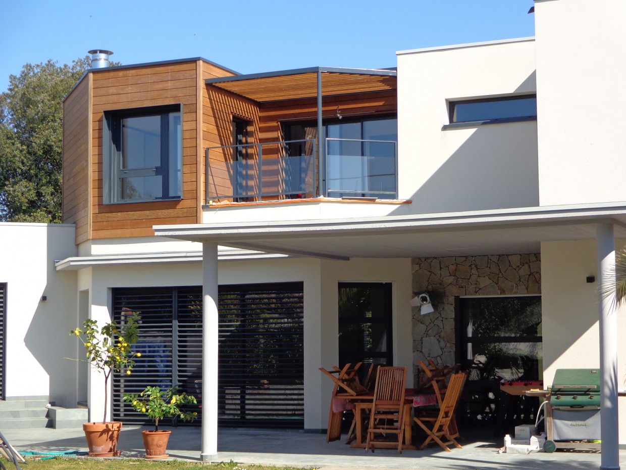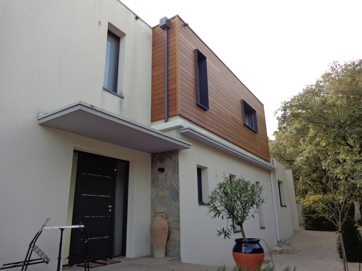 Le projet consiste à créer une surélévation bois en R+1 pour réaliser 2 chambres et une salle de bain supplémentaires ainsi qu’une terrasse abritée. En RDC à proximité de la piscine, un espace vestiaire/salle d’eau est également conçu en bois.